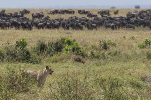 To look across the plains right now is to see a landscape in constant motion. Thousands upon thousands of wildebeest stretch toward the horizon, a dark, undulating sea against the gold of the grass. In the quiet moments, you hear it: the constant, low grunting of the herds and the frantic clicking of hooves. It’s a sensory overload that no photograph can fully translate, but I spent the day trying to capture that scale.